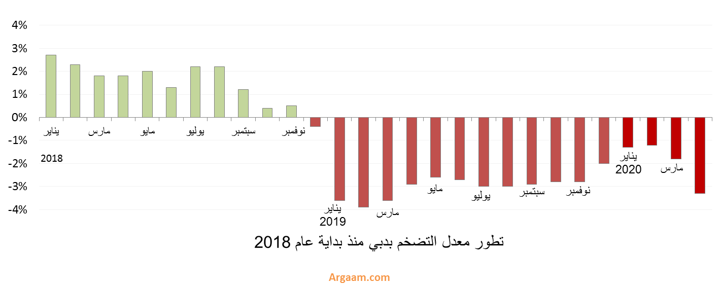 | معدل التضخم بدبي يبقى بالنطاق السالب في مارس 2020 |
