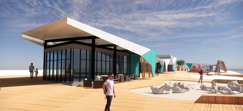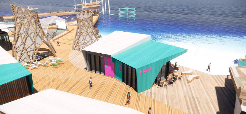 كما يشتمل على منافذ تجزئة وأكشاك ومواقف للسيارات ونادٍ رياضي، ومسار مخصص للجري وآخر للدراجات الهوائية، وحديقة للتسلق في وسط "شاطئ المغامرات".