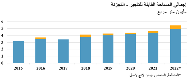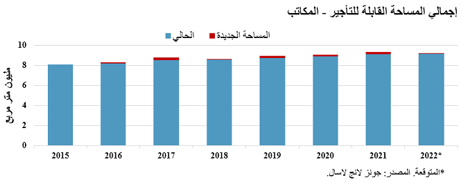 كما توقع التقرير أن تكون هناك زيادة محدودة في إجمالي المساحة القابلة للإيجار في عام 2022.