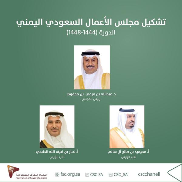 تعزيزاً للعلاقات الاقتصادية السعودية اليمنية أعلن اتحاد الغرف السعودية اعتماد التشكيل النهائي لمجلس الأعمال السعودي اليمني في دورته الجديدة (1444-1448)، وتسمية الدكتور عبدالله بن مرعي بن محفوظ رئيساً للمجلس، وكل من الأستاذ محيميد بن صالح آل سالم والأستاذ نهار بن ضيف الله الدلبحي نائبين للرئيس.