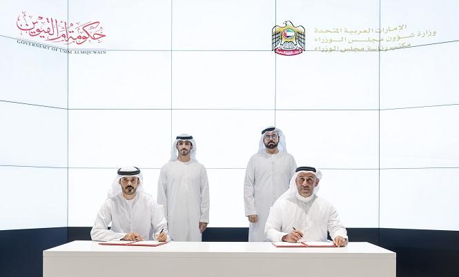 وقع مكتب رئاسة مجلس الوزراء بوزارة شؤون مجلس الوزراء، والمجلس التنفيذي لإمارة أم القيوين، مذكرة تفاهم تتبنى بموجبها حكومة أم القيوين نظام أداء حكومة دولة الإمارات.