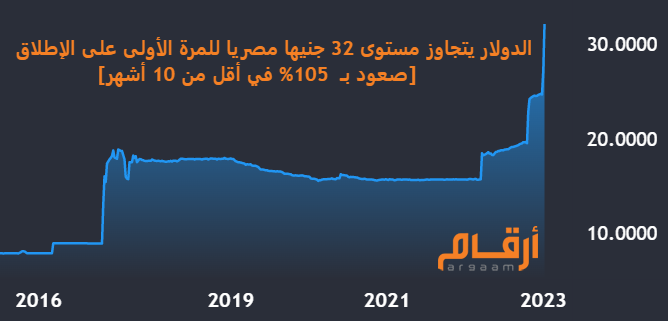 أظهرت بيانات اليوم، أن الدولار تجاوز حاجز الـ32 جنيها مصريا مقابل الدولار لأول مرة على الإطلاق.