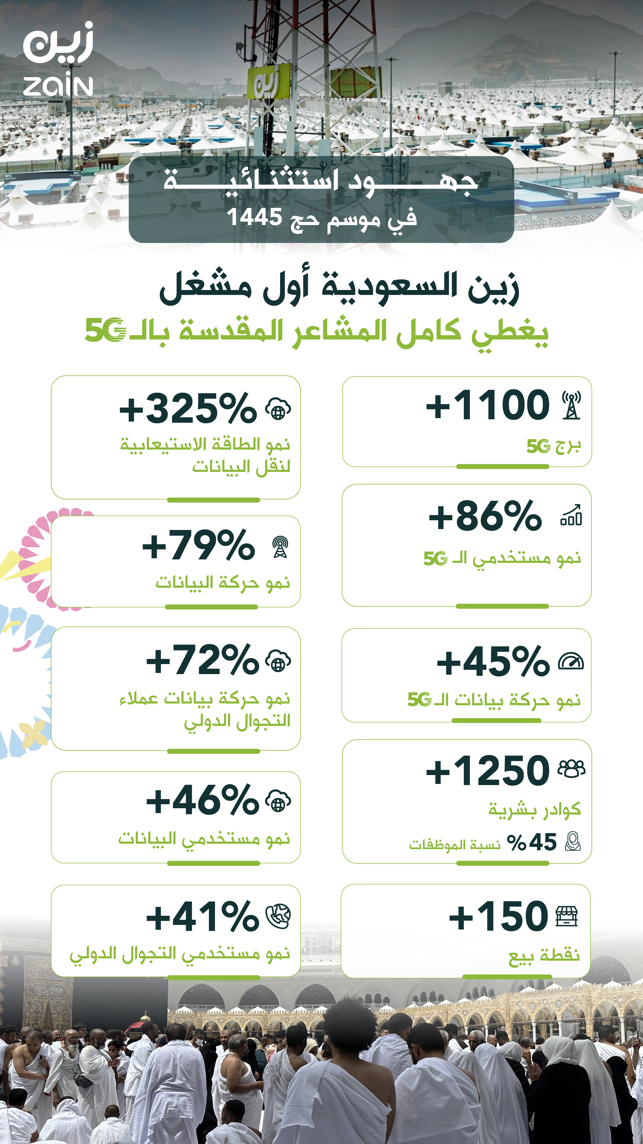 زين السعودية تُحقق نتائج قياسية في خدمات الجيل الخامس 5G خلال موسم الحج 1445هـ