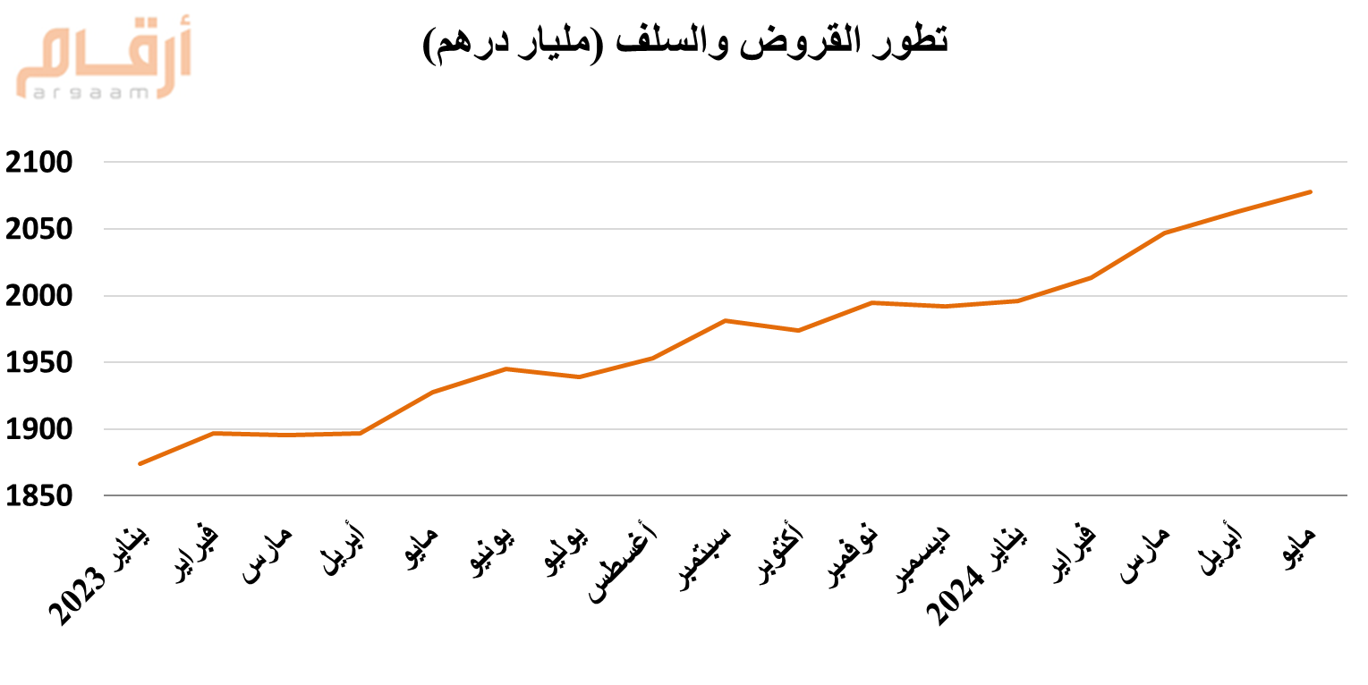 وارتفع إجمالي الائتمان إلى 2077.7 مليار درهم بنهاية مايو الماضي، وبنسبة 7.8% مقارنة بنفس الفترة من عام 2023، في حين ارتفعت بقيمة 14.6 مليار درهم مقارنة بالشهر الذي سبقه.