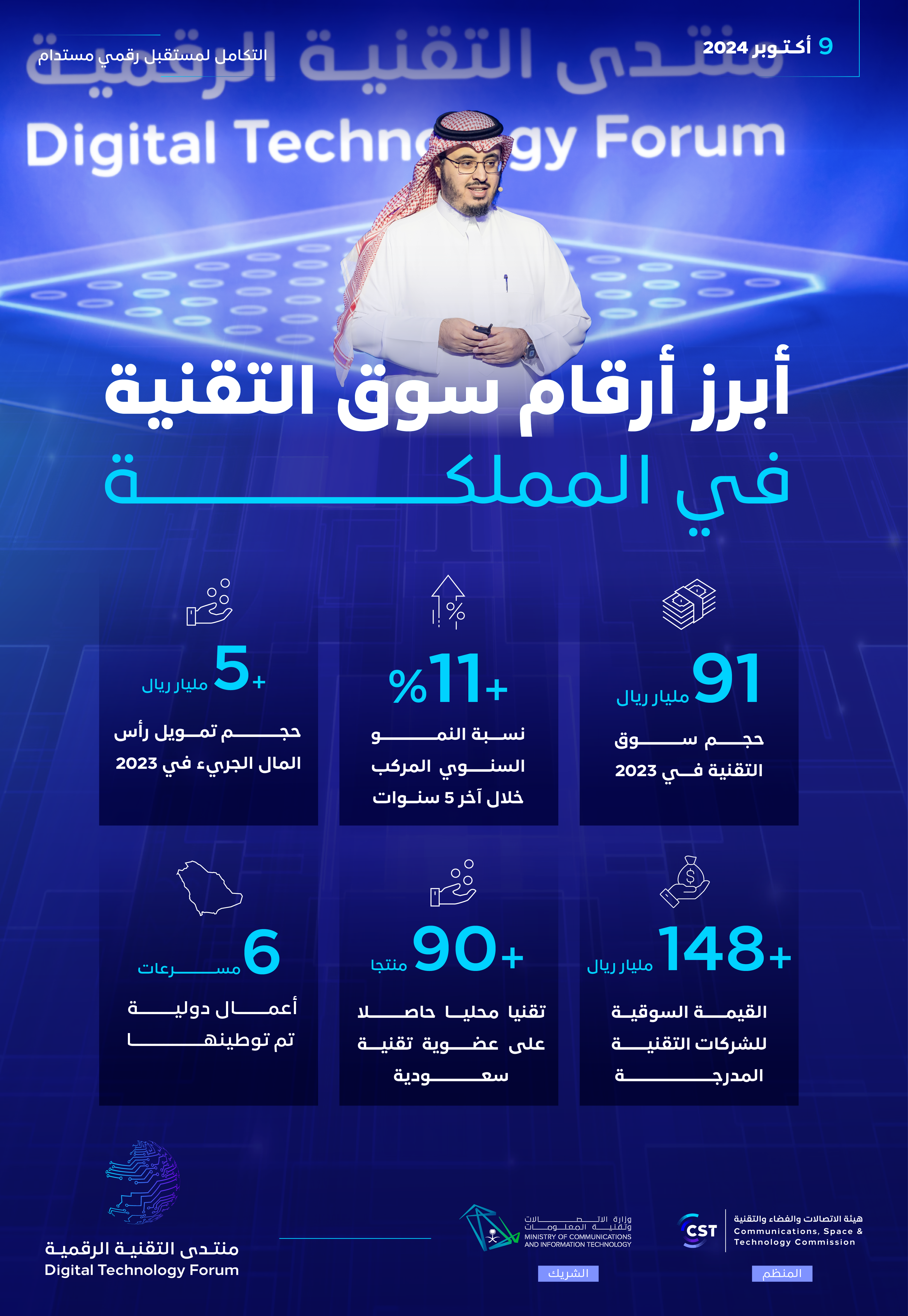 يذكر أن هيئة الاتصالات والفضاء والتقنية تعقد منتدى التقنية الرقمية سنويا بالشراكة مع وزارة الاتصالات وتقنية المعلومات لمواكبة أحدث التطورات والمتغيرات في قطاع التقنية،  حيث ناقش في نسخته الحالية من خلال 4 جلسات حوارية و 4 عروض تقديمية أبرز فرص وأدوات التكامل في قطاع التقنية في المملكة.