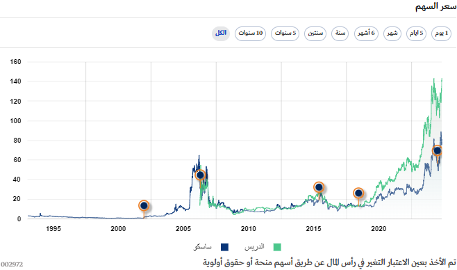 من أرقام تشارتس: مقارنة بين الدريس وساسكو (أداء السهمين - مؤشرات - بيانات وغيرها)