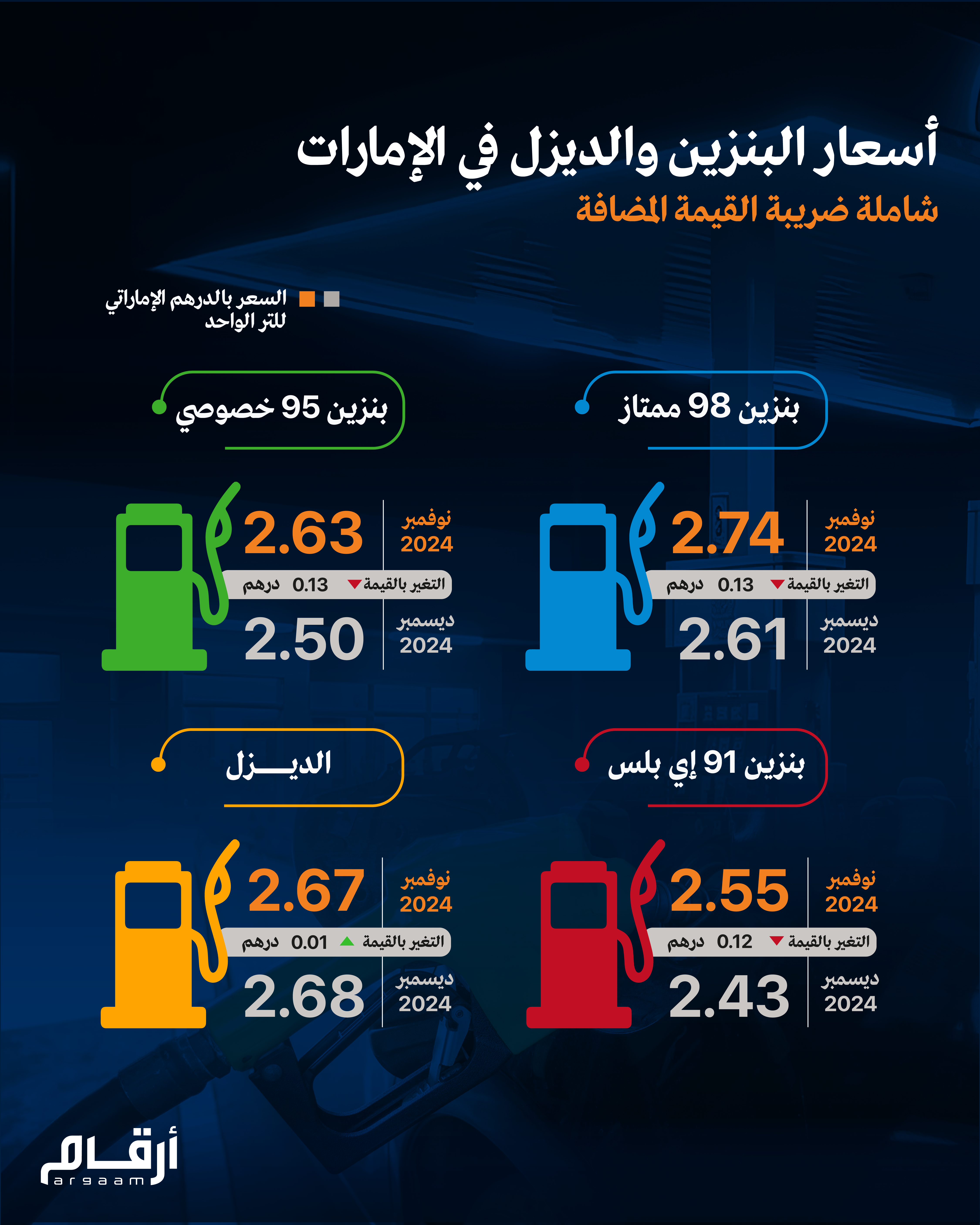 أسعار البنزين والديزل في الإمارات لشهر ديسمبر 2024