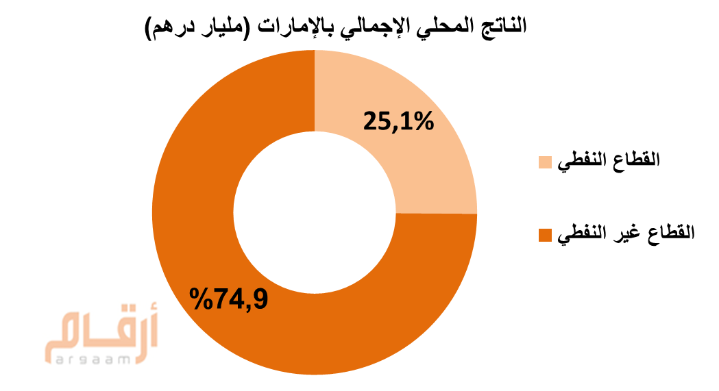 وبحسب بيانات الهيئة، وصلت مساهمة تجارة الجملة والتجزئة في الناتج المحلي الإجمالي بالأسعار الثابتة إلى 56.8 مليار درهم، بنسبة نمو سنوي بلغ 2.8%، فيما وصلت مساهمة الصناعات التحويلية إلى 52.2 مليار درهم بنسبة ارتفاع 2.4%، بينما بلغت مساهمة الأنشطة العقارية نحو 26.9 مليار درهم بزيادة 4.1%.