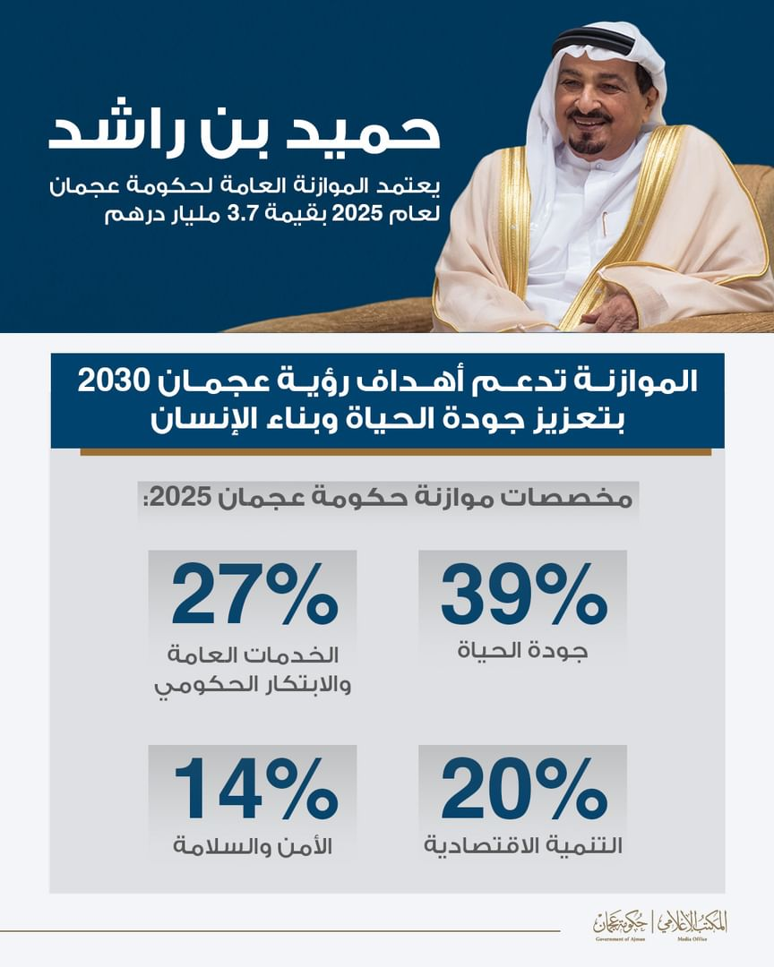 اعتماد الموازنة العامة لحكومة عجمان لعام 2025 بإجمالي نفقات 3.7 مليار درهم