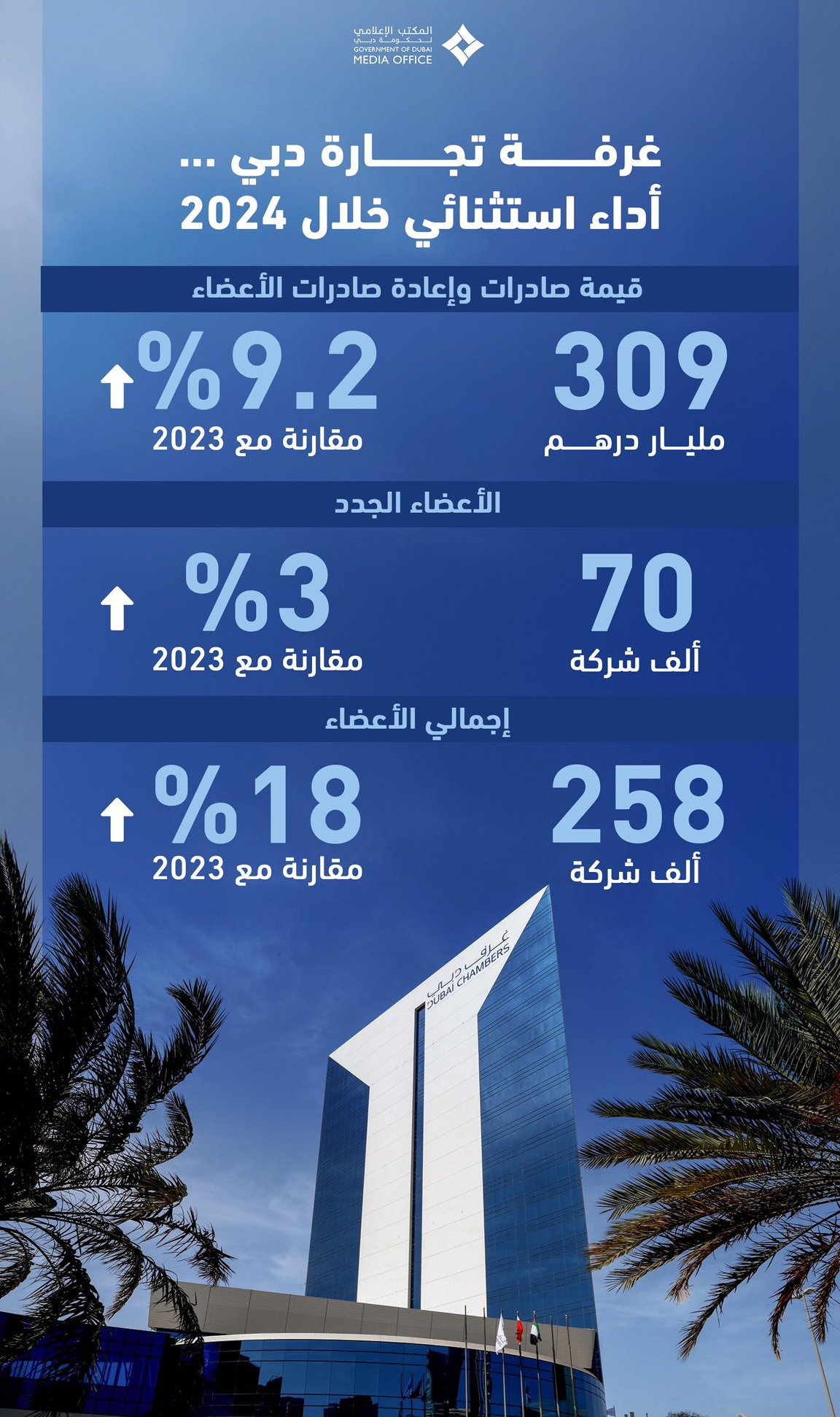 وحسب بيانات أرقام، انضمت 70.5 ألف شركة جديدة إلى عضوية الغرفة بنهاية العام الماضي، بنمو 3% مقارنة بالعام 2023، وأصدرت غرفة تجارة دبي 791.12 ألف شهادة منشأ بنسبة نمو سنوية بلغت 8%.