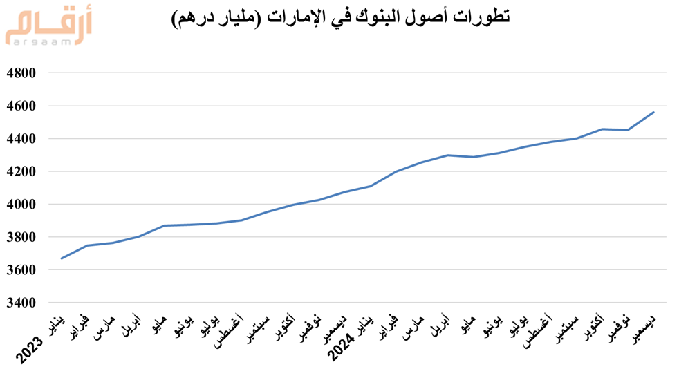 أصول البنوك في الإمارات ترتفع إلى 4560 مليار درهم (+12%) بنهاية ديسمبر 2024