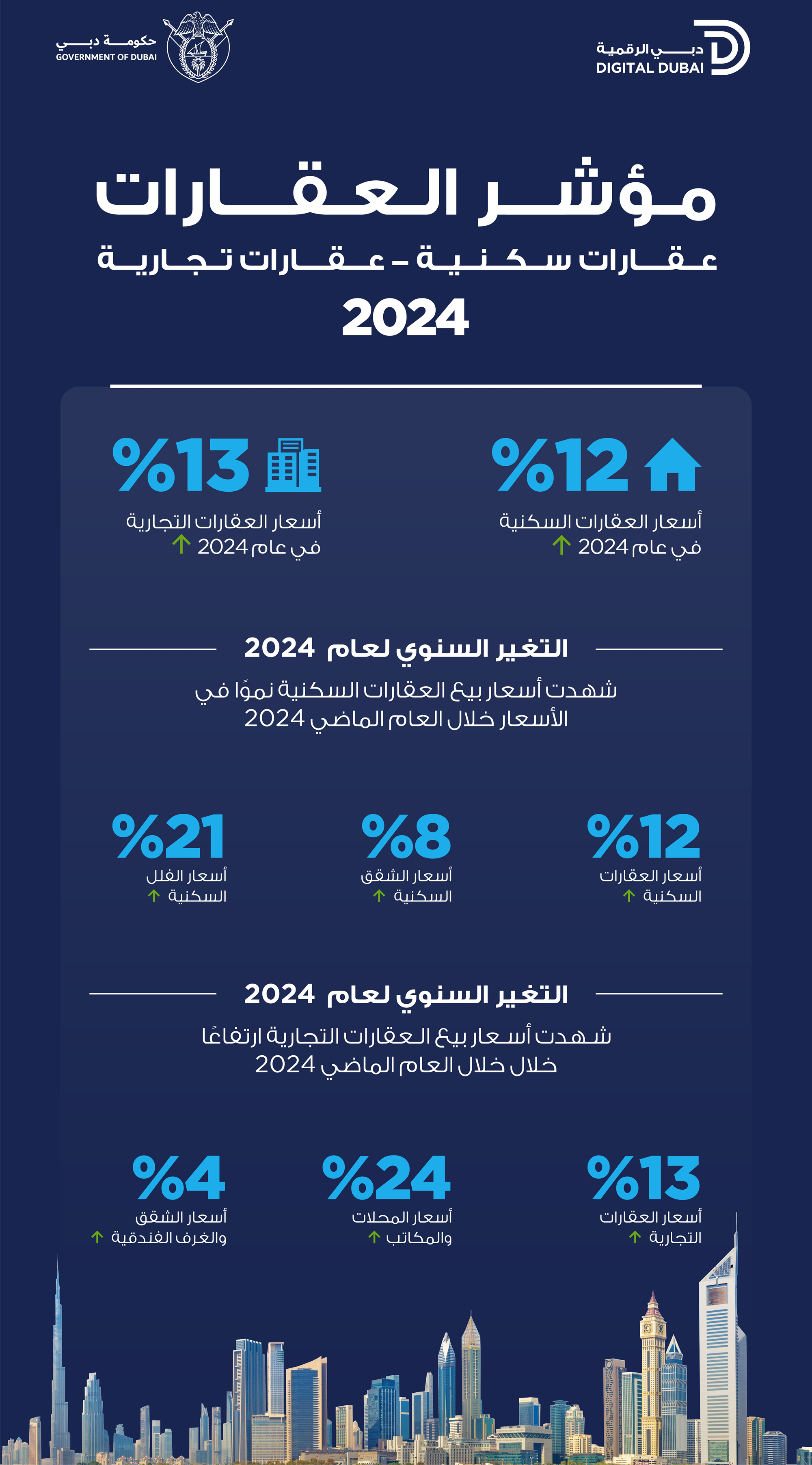 دبي للبيانات والإحصاء: ارتفاع أسعار العقارات السكنية بنسبة 12% خلال عام 2024
