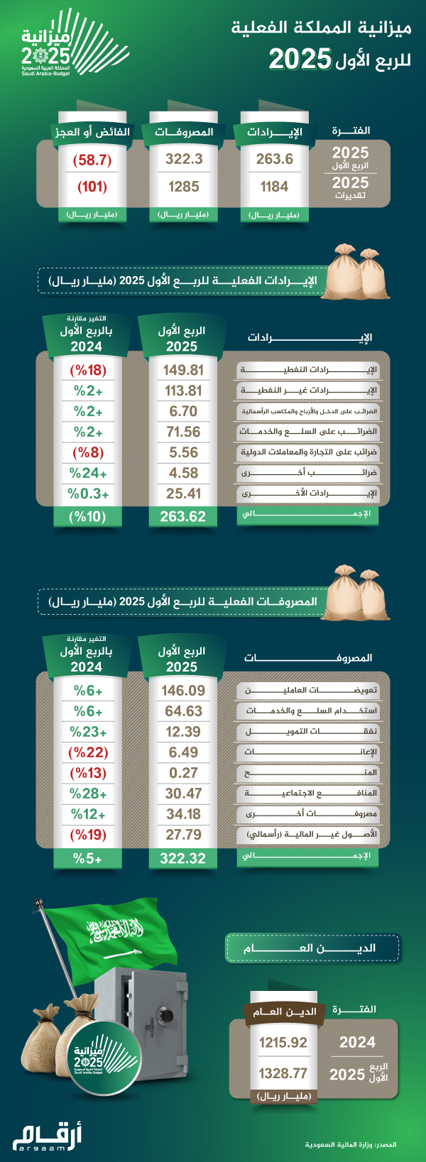 الدين العام حتى الربع الأول 2025 (مليار ريال) |
