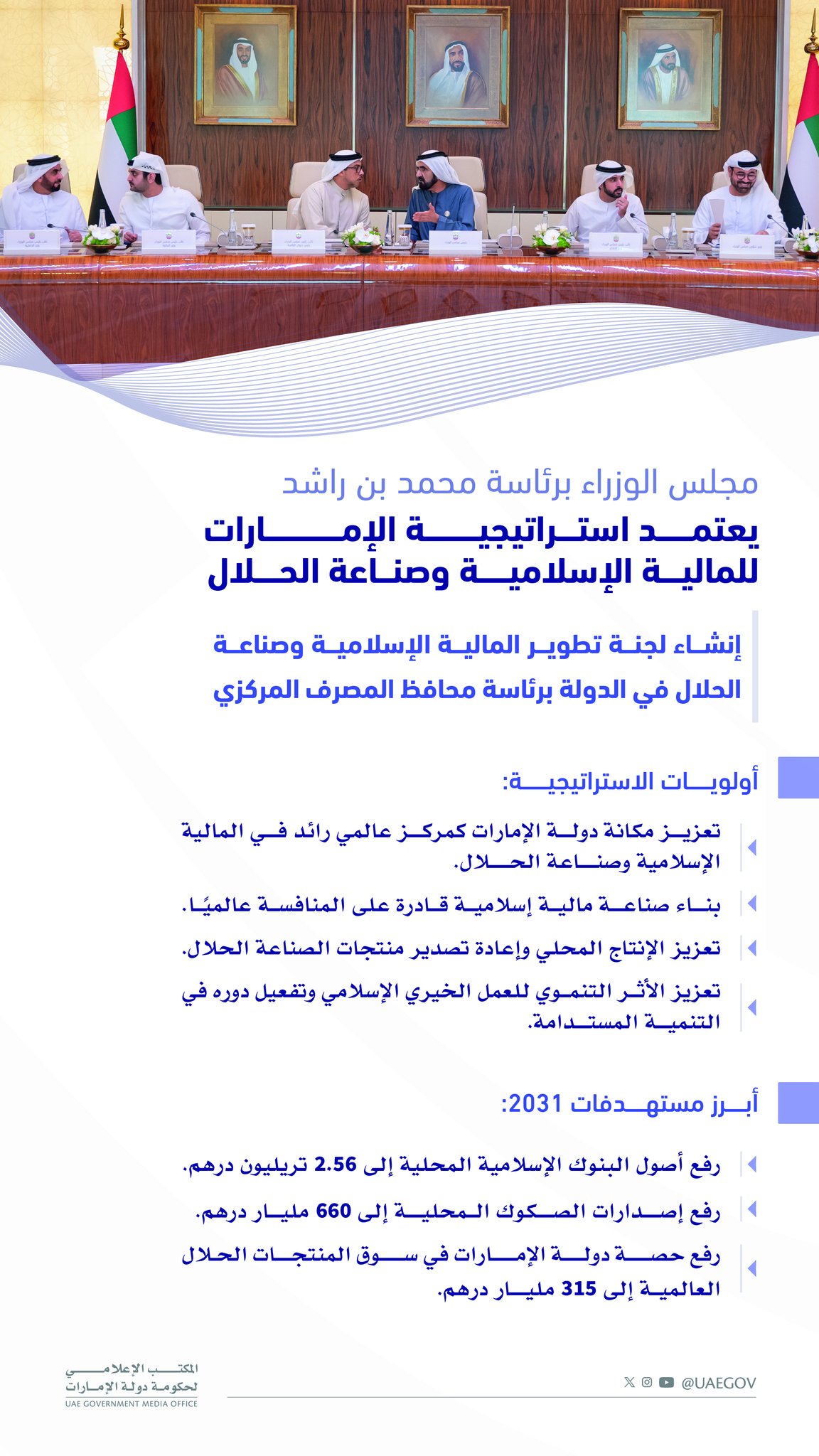 اطلع مجلس الوزراء على مستجدات ملف الشركات الصغيرة والمتوسطة في الدولة، حيث حصلت الدولة على المركز الأول عالمياً للسنة الرابعة على التوالي في تقرير المرصد العالمي لريادة الأعمال 2024-2025، والمرتبة السابعة في مؤشر التنافسية العالمية لعام 2024 الصادر من المعهد الدولي للتنمية الإدارية.