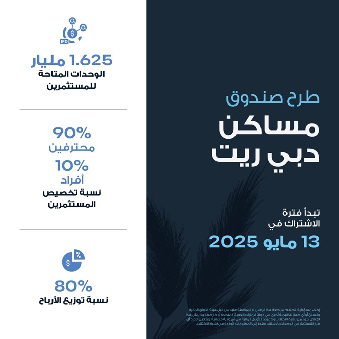 ويمتلك صندوق مساكن دبي ريت محفظة سكنية واسعة تضم أكثر من 35 ألف وحدة، بقيمة أصول إجمالية تتجاوز 21.6 مليار درهم، ما يجعله من بين أكبر الصناديق في المنطقة من حيث الحجم والتركيبة. ويأتي إدراجه في إطار التنظيمات الجديدة لصناديق الاستثمار العقارية في الدولة، والتي شملت إعفاء هذه الصناديق من ضريبة الشركات، وهو ما يعزز من جاذبيتها مقارنة بالاستثمار المباشر في العقار، ويمنح المستثمرين فرصة للوصول إلى قطاع العقارات دون الحاجة لتحمل أعباء التملك والإدارة اليومية.