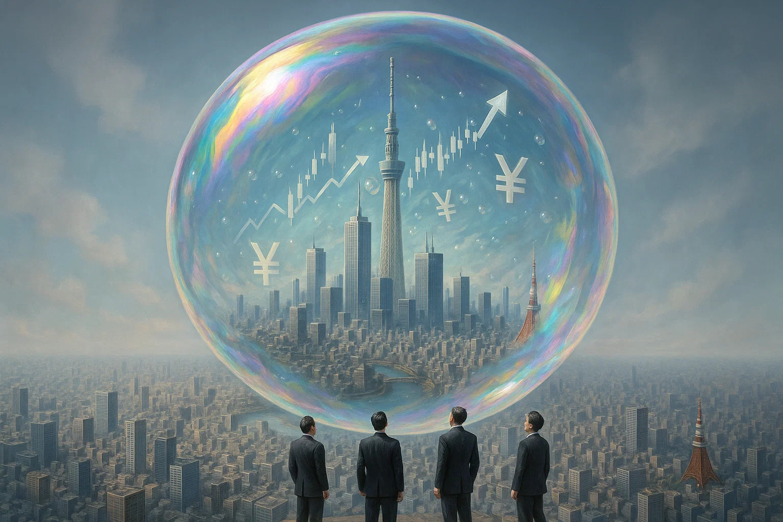 بلغ مؤشر "نيكي 225" ذروته التاريخية قرب 39 ألف نقطة في 29 ديسمبر 1989، وهي مستويات لم تُرَ مجددًا إلا في 2024، كما تضخمت أسعار الأراضي في اليابان إلى حد أن القيمة المُفترضة لأراضي القصر الإمبراطوري تخطت إجمالي قيمة أراضي ولاية كاليفورنيا.