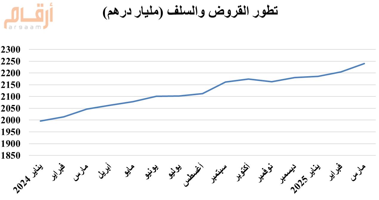 وارتفع إجمالي الائتمان إلى 2240 مليار درهم بنهاية مارس الماضي، وبنسبة 9.4% مقارنة بنفس الفترة من عام 2024، في حين ارتفع بقيمة 35.7 مليار درهم مقارنة بالشهر الذي سبقه.