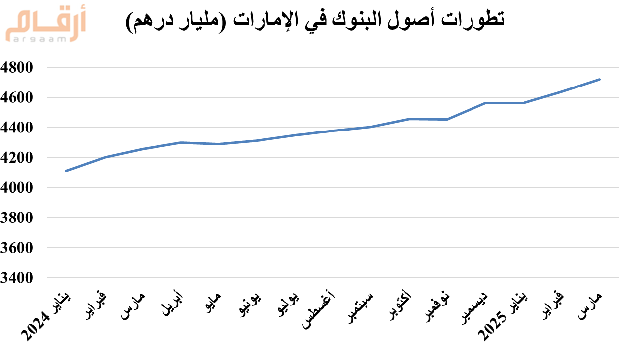 أصول البنوك في الإمارات ترتفع إلى 4719.4 مليار درهم (+11%) بنهاية مارس 2025
