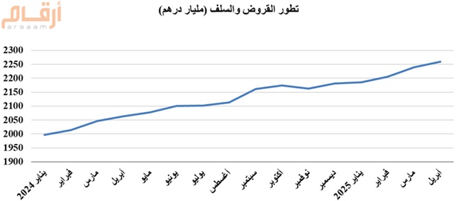 وارتفع إجمالي الائتمان إلى 2259.4 مليار درهم بنهاية أبريل الماضي، وبنسبة 9.5% مقارنة بنفس الفترة من عام 2024، في حين ارتفع بقيمة 19.4 مليار درهم مقارنة بالشهر الذي سبقه.