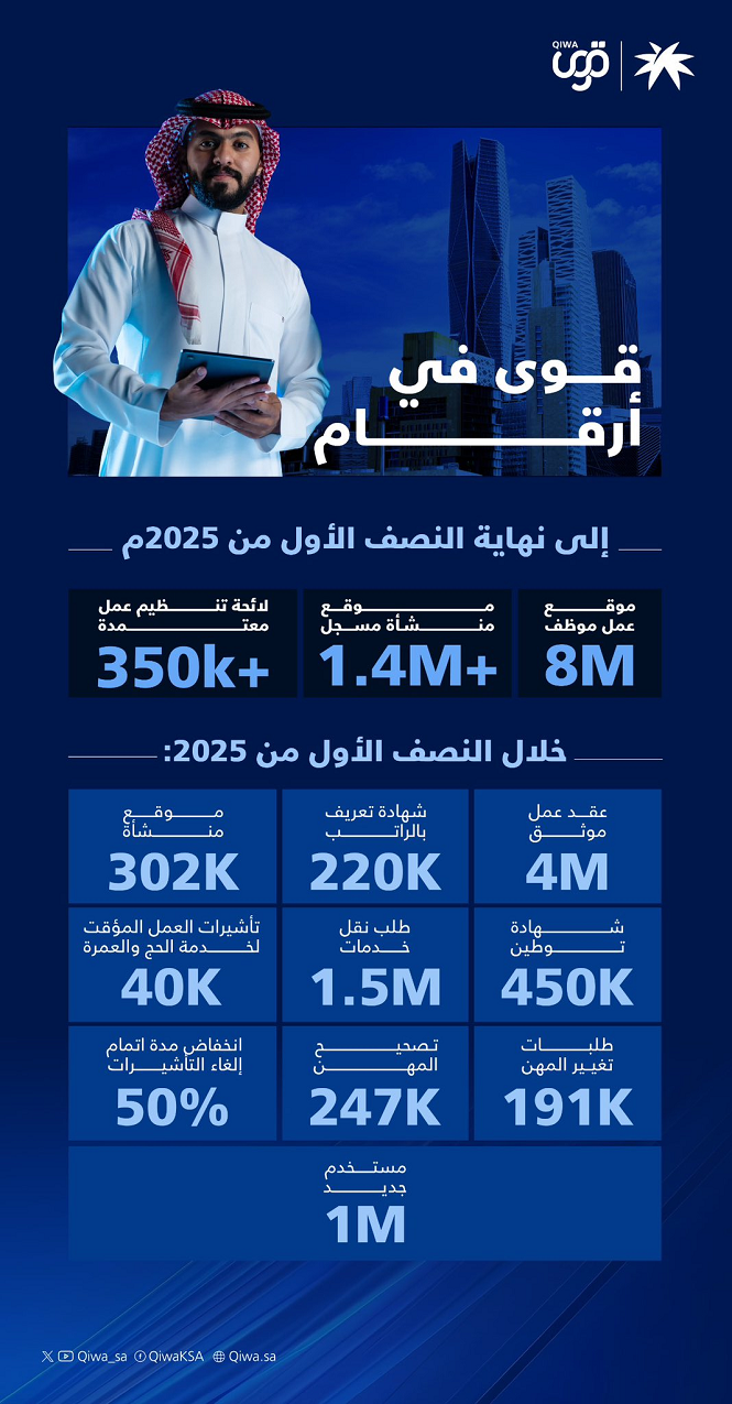 منصة قوى: تسجيل أكثر من 14.5 مليون مستخدم و11 مليون عقد موثق في النصف الأول 2025