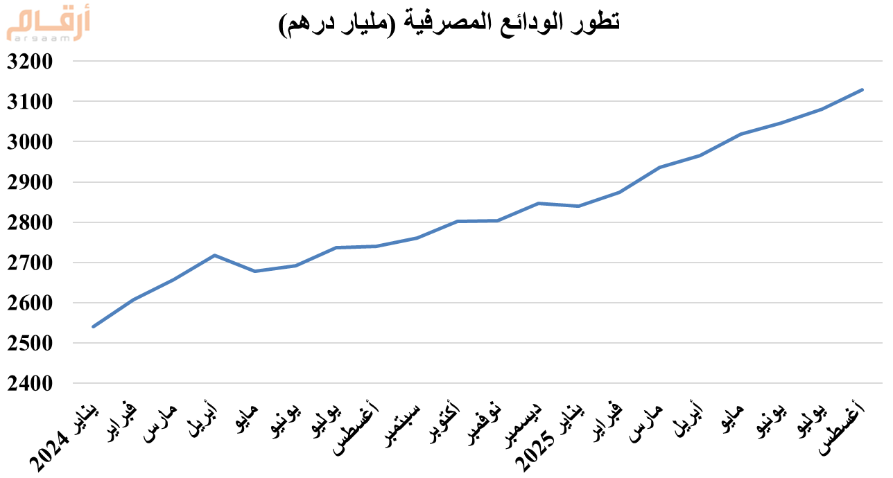 ووفقا لأحدث إحصائيات مصرف الإمارات المركزي، ارتفعت الودائع المصرفية إلى 3128.5 مليار درهم بنهاية أغسطس 2025، وبـنسبة 14% مقارنة بنفس الفترة من عام 2024، وارتفعت بقيمة 48 مليار درهم مقارنة بشهر يوليو الماضي.