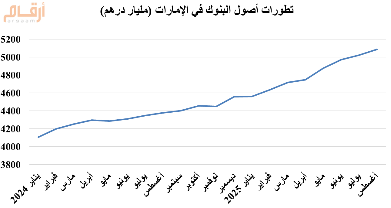 أصول البنوك في الإمارات ترتفع إلى 5087.0 مليار درهم (+16%) بنهاية أغسطس 2025