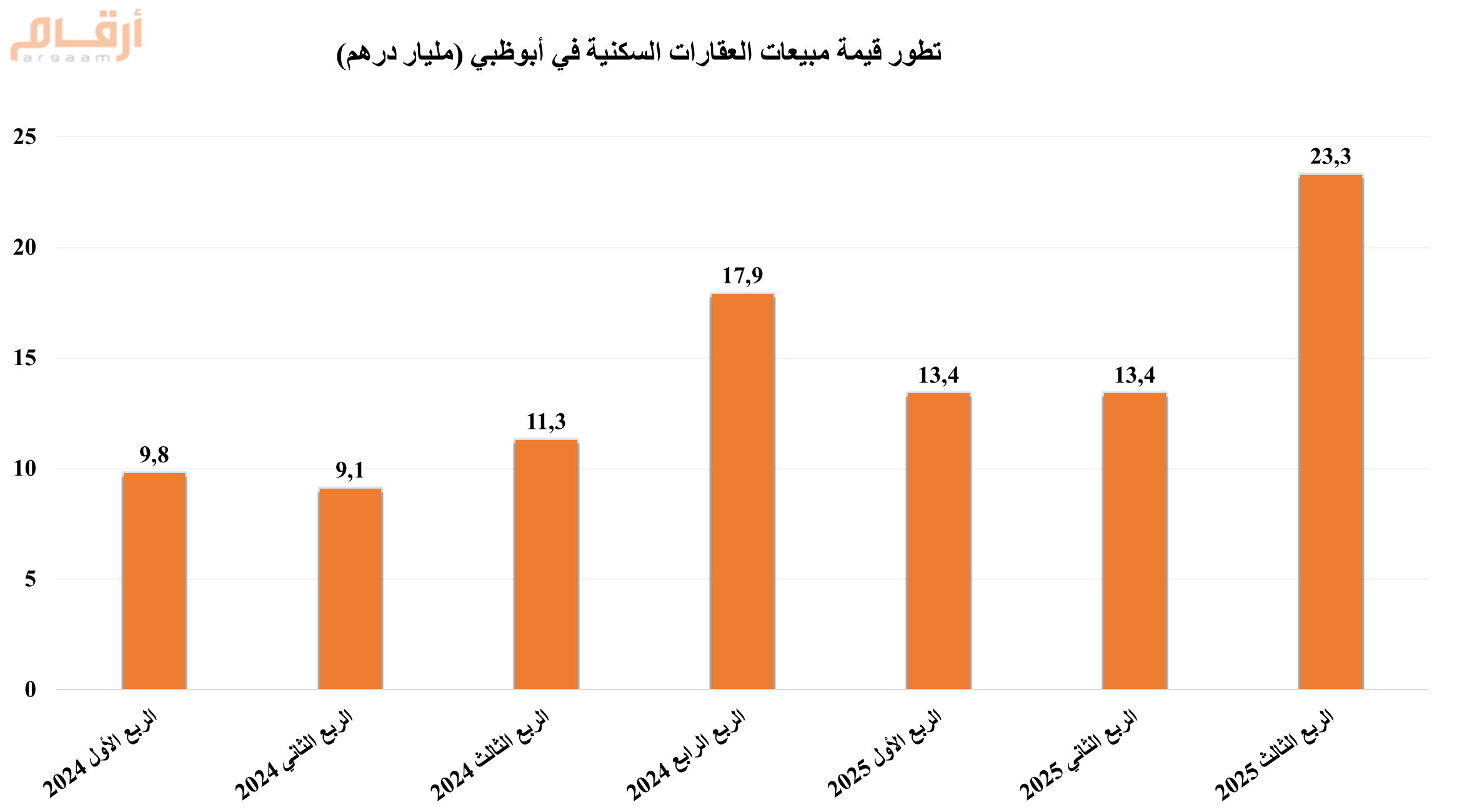 تقرير: مبيعات العقارات السكنية في أبوظبي تتجاوز 23 مليار درهم في الربع الثالث 2025