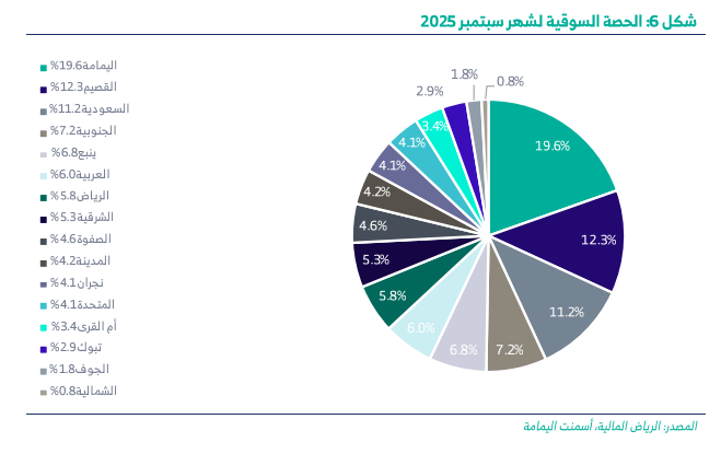 واختتمت النشرة بتأكيد تصدُّر أسمنت اليمامة للحصة السوقية بنسبة 19.6%، تلتها أسمنت القصيم بـ12.3%، ثم أسمنت السعودية بـ11.2%.