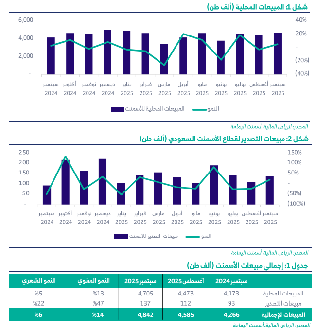الرياض المالية: التقرير الشهري لقطاع الإسمنت - سبتمبر 2025