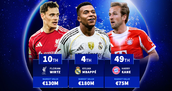 - تصدر "أرسنال" و"باريس سان جيرمان" قائمة الأندية التي تمتلك أكبر عدد من اللاعبين ضمن قائمة الـ 100 لاعب الأغلى عالميًا، بواقع 10 لاعبين لكل منهما، تلاهما نادي ريال مدريد بتسعة لاعبين ولكن بقيمة سوقية إجمالية تتجاوز مليار دولار.