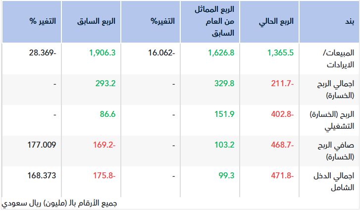 علاوة على ذلك، خلال الربع السابق ارتفعت حصة الشركة من خسائر الاستثمارات في الشركات المشتركة والشركات الزميلة ناتجة عن انخفاض في قيمة استثمار في شركة مشتركة بمبلغ 171 مليون ريال سعودي. |