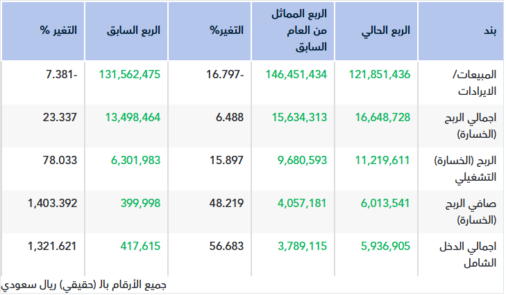 | بند | الفترة الحالية | الفترة المماثلة من العام السابق | التغير% |