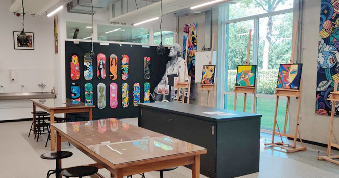 تضم "أجورا" مكتبة زاخرة بالكتب والمراجع، وورشة للمعادن ومركزًا للنجارة وماكينات خياطة، وغرفة للاختراعات مليئة بقطع الليجو، ما يمكن الطلاب من قضاء وقتًا ممتعًا.