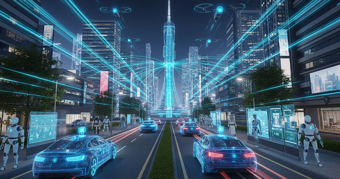 - الشبكات الذكية يُقصد بها شبكات الاتصالات التي تُدار بواسطة الذكاء الاصطناعي، إذ تستطيع تحليل البيانات محليًا في نطاق قريب من المستخدم، ما يقلل التأخير ويحسّن كفاءة استهلاك الطاقة.