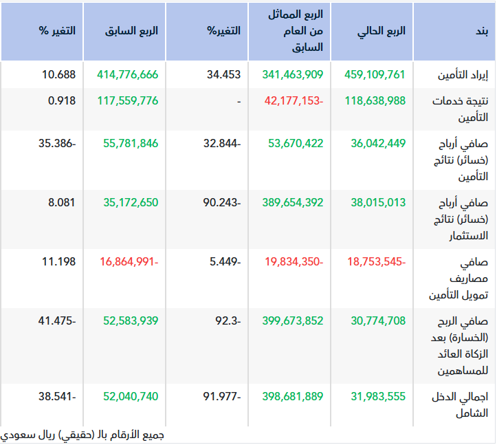 -إنخفاض صافي أرباح الإستثمار بنسبة 90% ويعود ذلك بسبب رئيسي إلى تسجيل الشركة أرباح رأسمالية إستثنائية خلال الربع المماثل من العام السابق من بيع حصتها في شركة بروبيتاز القابضة بلغت 365.9 مليون ريال. -إنخفاض صافي نتائج إعادة التأمين بنسبة 33%. - الانتهاء من تخصيص برنامج أسهم الموظفين (حوافز طويلة الأجل) وإضافة تكاليفها. |