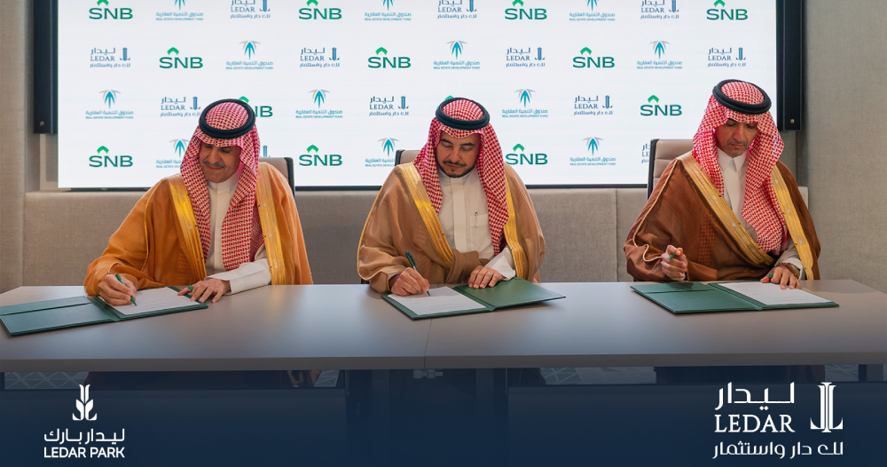 وقَّعت شركة "ليدار للاستثمار" اتفاقية تعاونٍ مع "صندوق التنمية العقارية"، و"SNB"؛ لتقديم برامج دعمٍ وتمويلٍ ميسَّرة للراغبين في الاستثمار والتملُّك ضمن مشروعها "ليدار بارك" في بريدة بالقصيم، وذلك في إطار منتج "أرض وقرض وبرامج الدعم السكني"، التي تُعزِّز الشراكة بين القطاعَين العام والخاص.