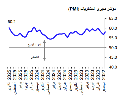 ارتفع المؤشر إلى 60.2 نقطة في شهر أكتوبر، مسجلًا ثاني أعلى مستوى له خلال أكثر من 11 عامًا، بدعم من ارتفاع الطلبات الجديدة، وزيادة التوظيف، والتوسع القوي في نشاط القطاع الخاص.