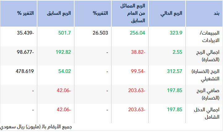 | يعود سبب الارتفاع (الانخفاض) في صافي الربح خلال الربع الحالي مقارنة بالربع السابق | يعود سبب تحقيق الشركة صافي ربح خلال الربع الحالي مقارنة بصافي خسارة في الربع السابق بشكل رئيس إلى تحقيق ربح من بيع أرض بقيمة 553 مليون ريال سعودي. |