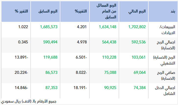 | جميع الأرقام بالـ (الاف) ريال سعودي | |||