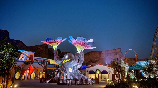 كما يضم المتنزه 18 لعبة وتجربة مخصصة للعائلات والأطفال لضمان تقديم تجربة ترفيهية متكاملة ومناسبة لجميع الأعمار، ويمكن للزوار الاستمتاع بتشكيلة واسعة ومنوعة من المطاعم العالمية، ويحتوي المتنزه على العديد من المتاجر موزعة داخل العوالم الستة.