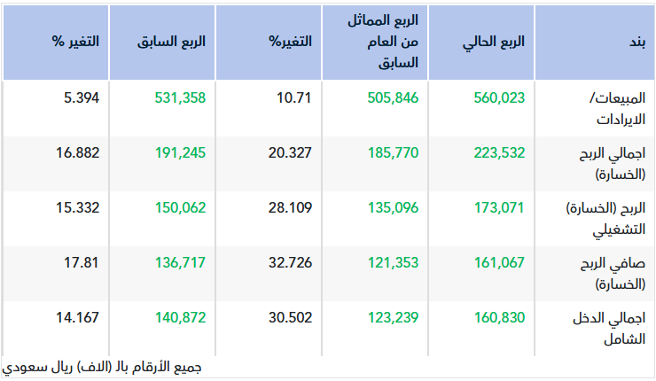 | جميع الأرقام بالـ (الاف) ريال سعودي | |||