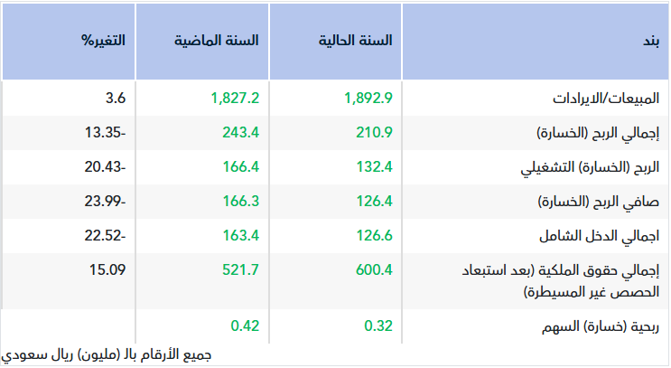 ارتفاع المصاريف الإدارية والعمومية بمبلغ 3.2 مليون ريال 5.9% نتيجة ارتفاع مصاريف الإستشارات المهنية ومصاريف الإستهلاك والصيانة والنظافة للمباني الجديدة وتسجيل رسوم الإدراج.