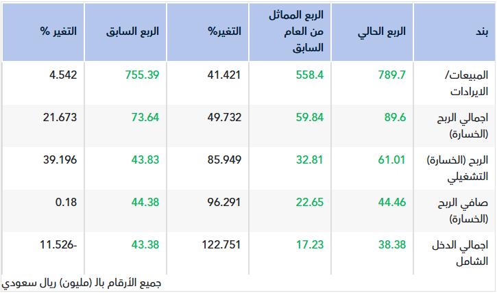 حقَّقت الشركة خلال الربع الثالث من العام الحالي صافي ربح موحَّدًا قدره 44 مليون ريال عائدًا لمساهميها، وهو مستوى مماثل تقريبًا للربع السابق ، ويعود ذلك إلى: