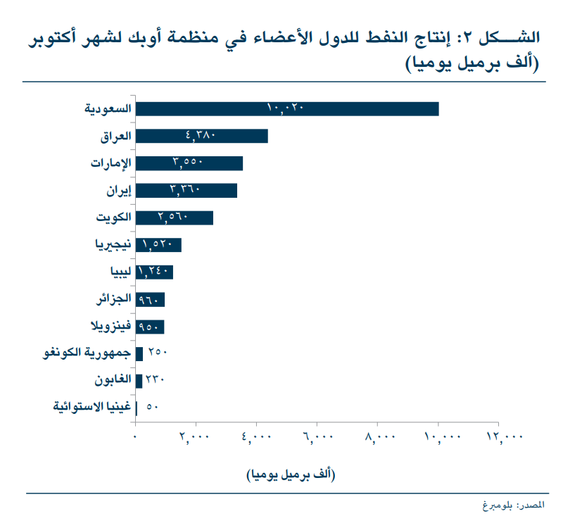 انخفضت أسعار خام برنت بسبب المخاوف من فائض المعروض وتراجع الطلب خلال شهر أكتوبر. جاء انخفاض أسعار النفط نتيجة استئناف صادرات كردستان من العراق والتوقعات بزيادة إنتاج أوبك وحلفائها وارتفاع المعروض من الدول غير الأعضاء في منظمة أوبك، فيما ساهم تراجع الطلب من الصين والتوترات التجارية في زيادة الانخفاض.
