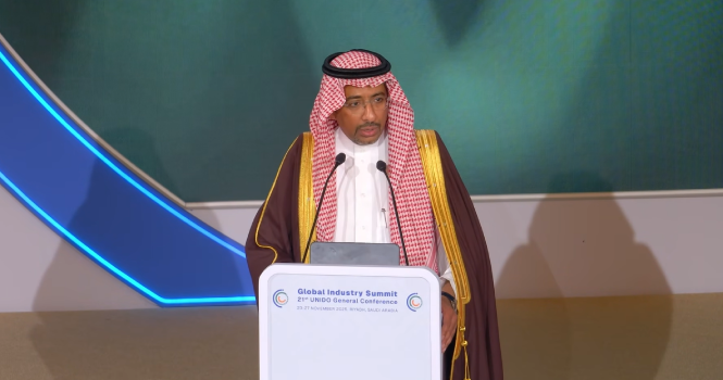 أكّد وزير الصناعة والثروة المعدنية بندر بن إبراهيم الخرّيف خلال إلقائه الكلمة الافتتاحية في المؤتمر العام لمنظمة الأمم المتحدة للتنمية الصناعية "اليونيدو"، أن التقدم الصناعي لا يُقاس بعدد المصانع فحسب، بل بقدرة القطاع على تحقيق الشمولية الصناعية، وتحفيز الابتكار، وتحقيق الاستدامة.