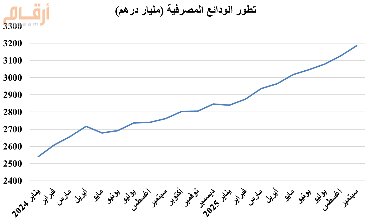ووفقا لأحدث إحصائيات مصرف الإمارات المركزي، ارتفعت الودائع المصرفية إلى 3186 مليار درهم بنهاية سبتمبر 2025، وبـنسبة 15% مقارنة بنفس الفترة من عام 2024، وارتفعت بقيمة 57.5 مليار درهم مقارنة بشهر أغسطس الماضي.