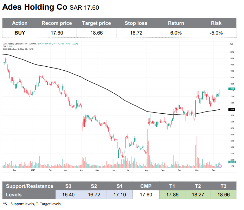 أظهر سهم شركة أديس القابضة المدرجة في السوق السعودي، اتجاهًا صعوديًا قويًا بعد اختراقه لمستوى المقاومة، وتوقعت "المتحدة للأوراق المالية" استمرار هذا الاتجاه، مشيرة إلى أن الزخم وحجم التداول يدعم السعر، ويبدو الوضع إيجابيًا على المدى القريب. وأوصت "المتحدة" بالشراء على المدى القريب، مع وضع أمر إيقاف خسارة متحرك. وحددت المتحدة مستهدف سعري عند 18.66 ريالاً للسهم مقابل 17.6 ريالاً للسهم حالياً، بينما حددت مستوى 16.72 كإيقاف خسارة.