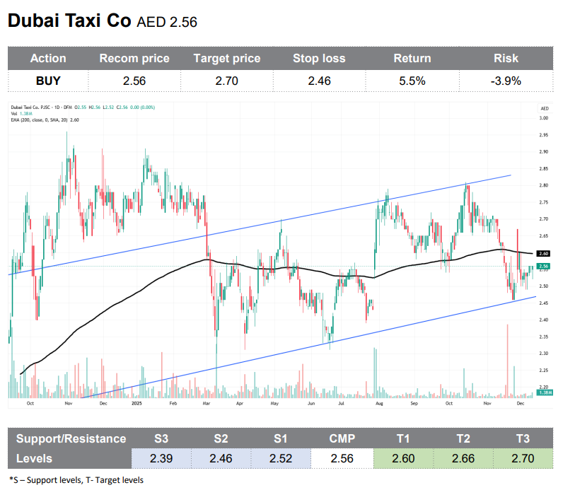 وفيما يخص شركة "تاكسي دبي" ذكرت التقرير أن سهم الشركة "لطالما كانت الخيار المفضل لدى المتداولين، حيث توفر تقلباتها الكبيرة خيارات دخول وخروج جيدة".