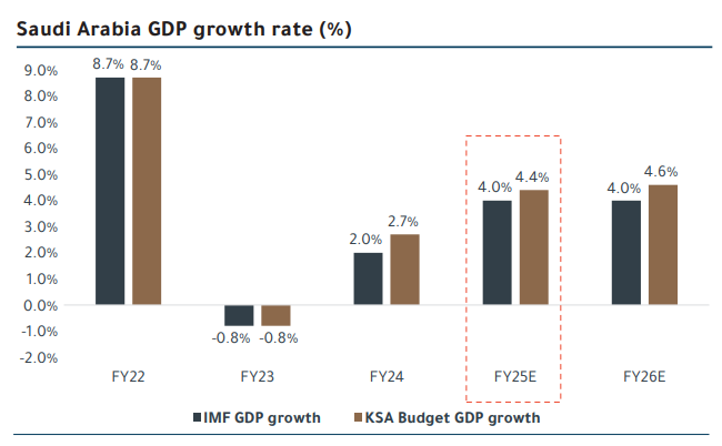 وأوضحت الجزيرة كابيتال أن توقعات صندوق النقد الدولي تشير إلى نمو اقتصادي يبلغ 4% خلال 2026، مقارنة بنفس المعدل خلال العام السابق، أما توقعات الموازنة العامة للمملكة فتفترض نمو اقتصادي يبلغ 4.6% في العام الجاري مقابل 4.4% في 2025.