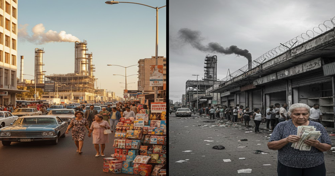 بعدما تمتعت فنزويلا – التي كانت لاعبًا رئيسيًا في أسواق النفط - بأحد أعلى معدلات دخل الفرد في أمريكا اللاتينية ووضع اقتصادي قوي، تراجع ناتجها المحلي الإجمالي الاسمي إلى 82.8 مليار دولار في 2025، وتراوحت نسبة الدين إلى الناتج من 180% إلى 200%.